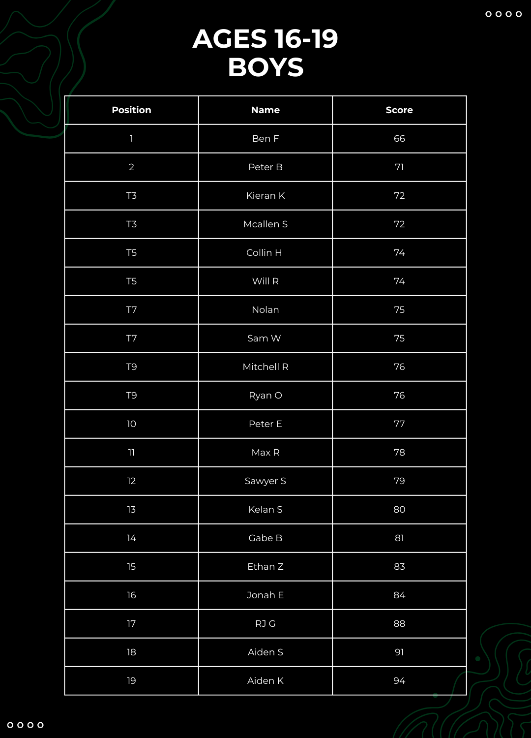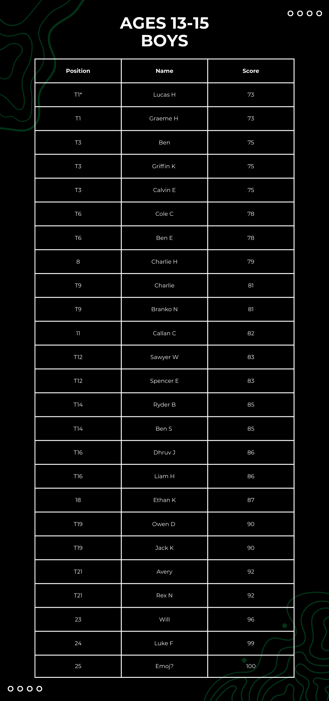 RYP ACADEMY FROZEN OPEN LEADERBOARD
